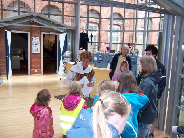 Heute war Eröffnung durch unseren Schirmherrn Herrn Pastor Stein. Über hundert Kinder machten sich danach auf den Weg, 8 Stationen in Meldorf zu erkunden. Überall gab es Mittelalterliches zu bestaunen. Im alten Brauereikeller, am Markt, im Dom, im Klosterhof, im alten Pastorat, in der Burgstraße, im Landesmuseum oder im Bauernhaus am Landwirtschaftsmuseum.